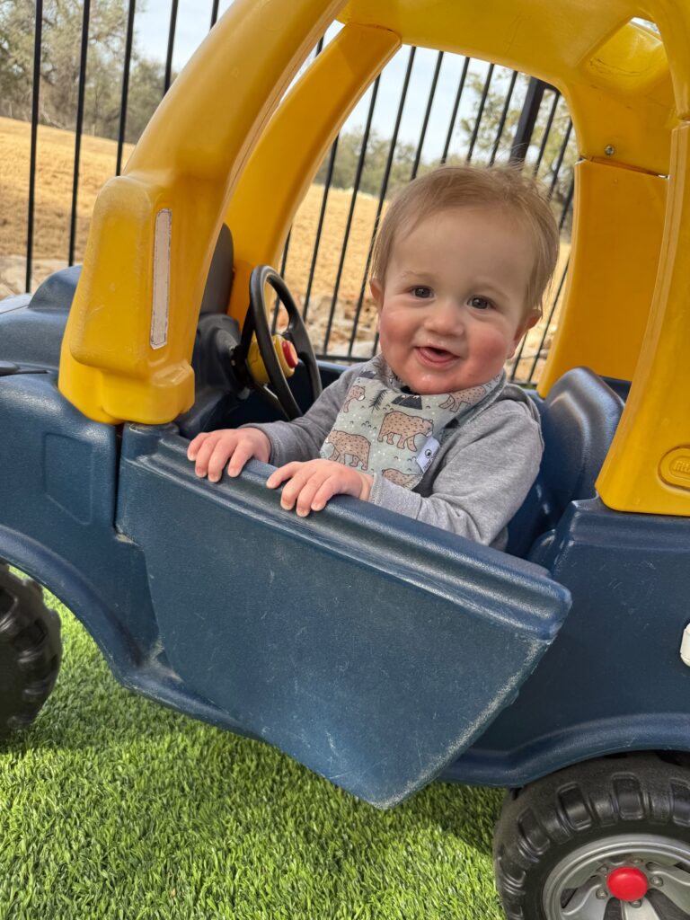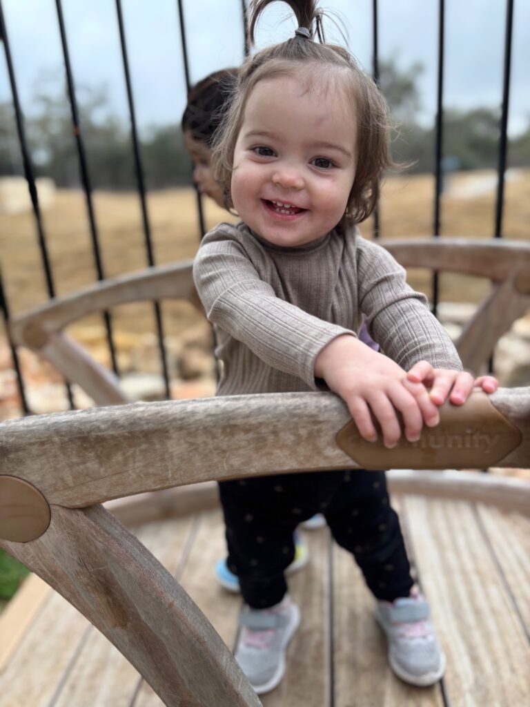 “Iris has been at Cantera Montessori since she was 6 months old and has grown into a beautiful, smart 3-year-old. She is always so happy and has several of her friends willing to help gather her belongings. Other than watching TV at Pawpaw and Gigi’s house, Iris loves being at school playing and learning with her friends and teachers.”