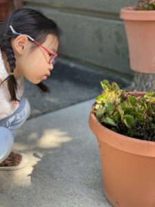 Each day, when Aarav arrives, he doesn’t put his coat or lunch box down, he joyfully moves around the garden checking on the ladybugs as they have settled into the garden.