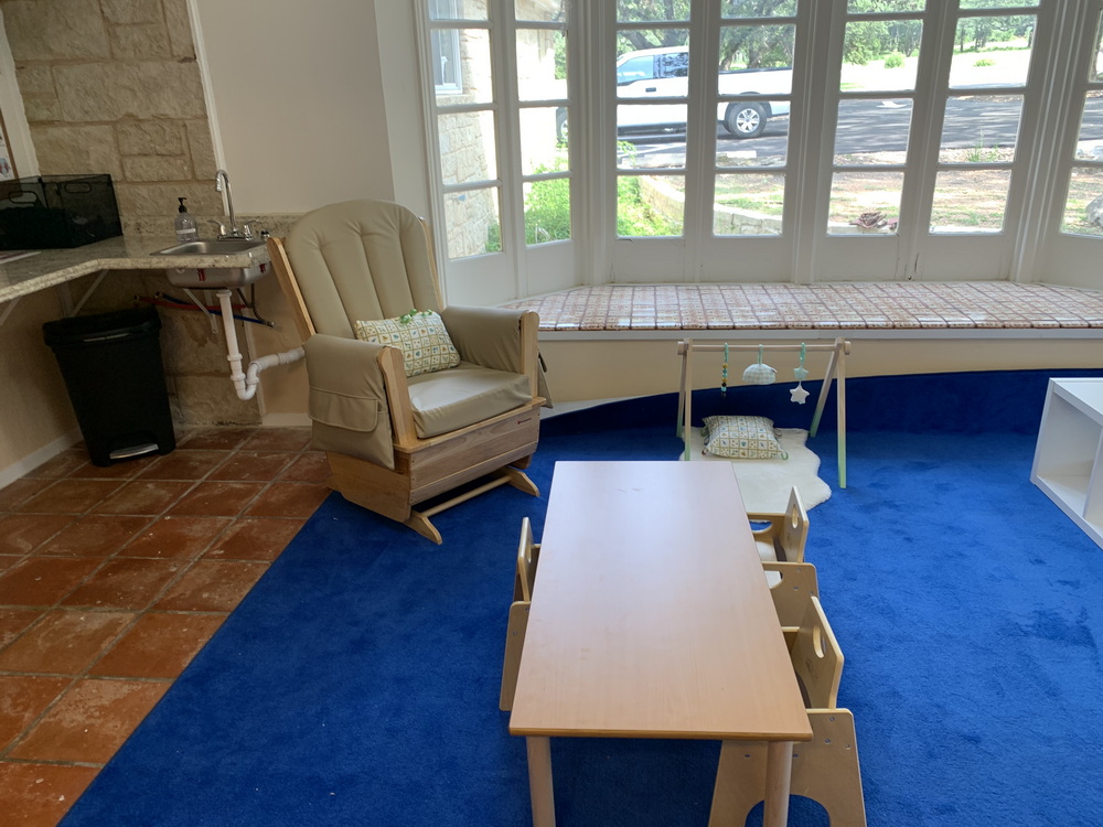 Developmentally appropriate furniture has been specifically organized around each room to encourage your child’s development and independence while exploring the world around them. In each room, you will find child-sized tables and chairs instead of high chairs, low, accessible toys and climbers, and many real-life items; all promoting independence in a clean, safe environment.