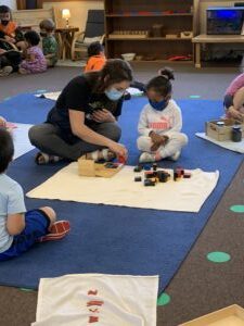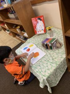 8:30 am – The morning circle began. The children sang songs and had their morning greeting. They went through the calendar learning the days of the week, the date, the month, and the year. They sang about the weather and even sang about a “meteorologist”.