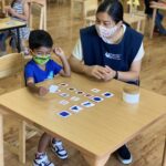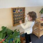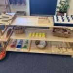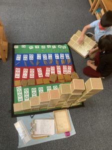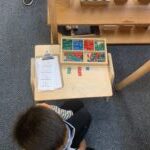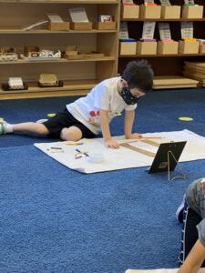 Instead, through observation, the Guide learns which materials a child is ready for. The Guide then presents the material allowing children to always be challenged. The children can learn at their pace and at their own level. Using the example of learning linear counting, 1-10, there are several materials on the shelf for the child to practice, thus learning the concept of “7”.