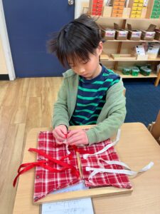 Then, we focus on Practical Life—the heart of a Montessori classroom. These real-world activities (like pouring, buttoning, and sweeping) aren’t just about keeping busy; they are designed to help children develop independence, coordination, concentration, and confidence. Teachers learn how these seemingly simple tasks build the skills children need for life and learning.