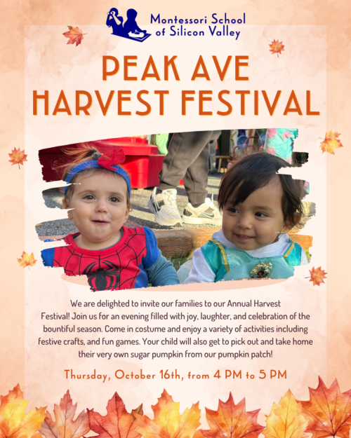 The First Annual Harvest Festival at our Peak Ave campus is almost here! On Thursday, October 16th, from 4–5 pm, our families will gather for an afternoon filled with seasonal fun and tradition. Children can come dressed in their favorite costumes and enjoy hands-on arts and crafts with their families that capture the spirit of fall. Families can stroll through our festive pumpkin patch, where each child will choose a sugar pumpkin to bring home.