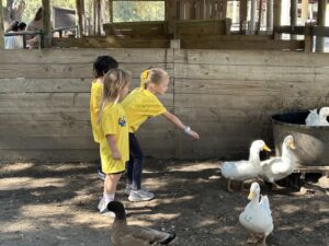 Throughout the visit, the children experienced petting goats and sheep, held baby chicks, and got to use an apple cannon. Each activity deepened their curiosity about nature while reinforcing what they’ve been learning in the classroom.