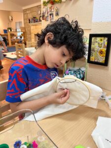 One of the most meaningful projects our Kindergarteners complete this spring is their button tree. This is not a simple craft. Creating a button tree requires fine motor precision, patience, focus, and an artistic eye. Every skill involved has been developed gradually over years of Montessori work, from the earliest practical life activities to the more refined handwork our children have grown into. When a child finishes their button tree and holds it in their hands, they are holding tangible evidence of their own growth. We frame them and they take these home, and many families treasure them for years.