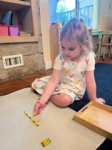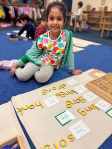 In the first year, much of the emphasis is on practical life activities and sensorial exploration. These experiences build the cognitive and physical foundation that language and math development rest on. By the second year, children are ready to move more fully into language and math work. Their reading continues to develop, their writing becomes more intentional, and their mathematical thinking deepens in ways that often surprise and delight their families.