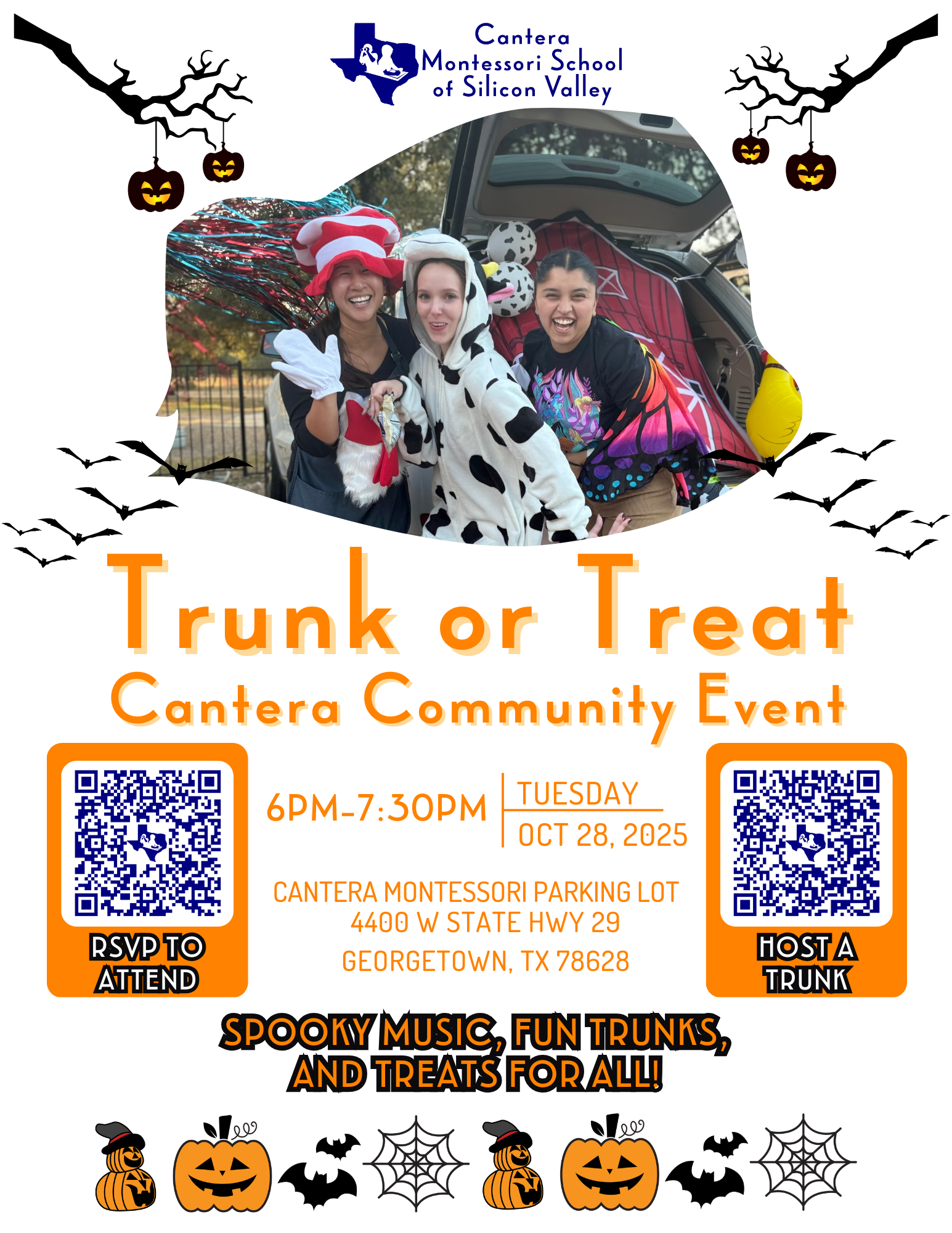 It’s that time of year again, we hope you are able to join us for our Annual Trunk or Treat here at Cantera Montessori.