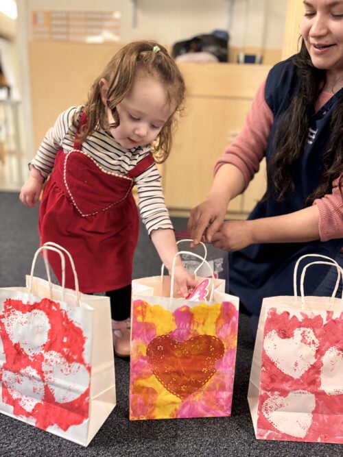 Our children enjoyed a special Valentine’s Day celebration during the school day across our campuses. The morning began with a Valentine-themed circle time designed just for the children. This shared experience supported listening, community, and connection as children gathered together to mark the day in a simple and meaningful way. Children had created their own Valentine bags earlier in the week and on Friday participated in a Valentine exchange with their classmates. These activities encouraged creativity, fine motor skills, and kindness as children shared valentines with one another. Celebrations like this are thoughtfully