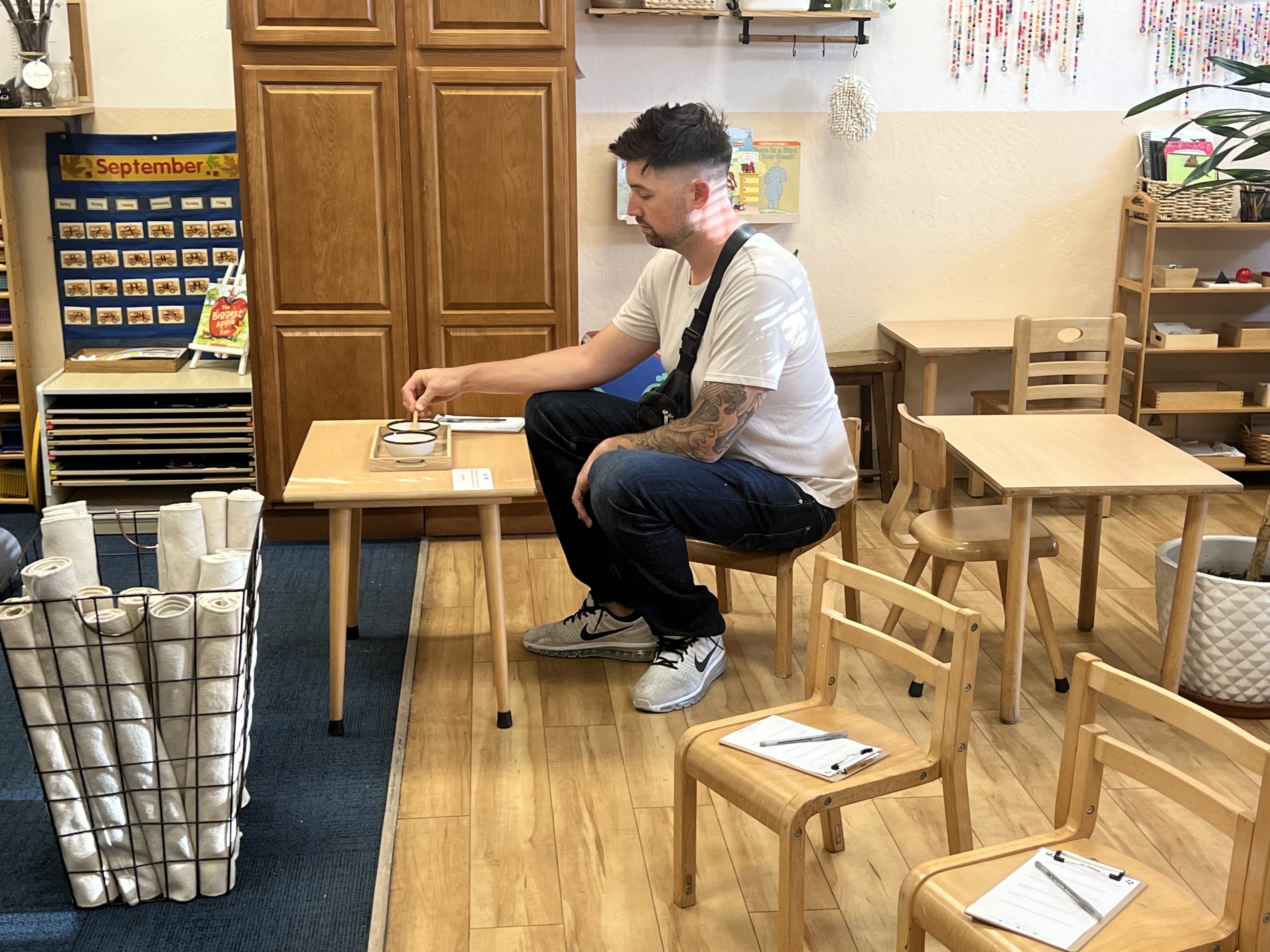 “I wish I attended a Montessori when I was little! I remember playtime was not this organized and all the kids were given the same job.”