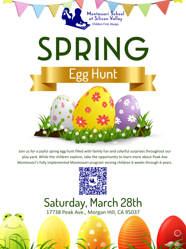 Come join us for some family fun and egg hunting in our play yard. You’ll also have a chance to learn more about our fully implemented Montessori program.
